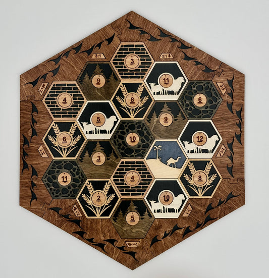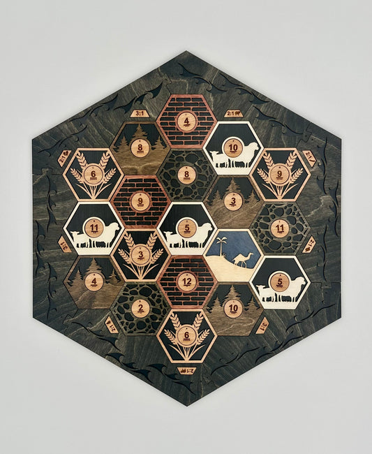 Wooden Game Board for Settlers Strategy Game, Black and Brown, 3-4 or 5-6 Players