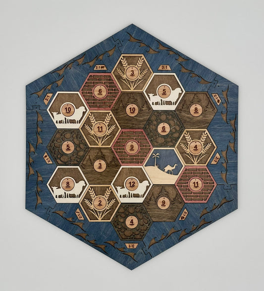Wooden Game Board for Settlers Strategy Game, Brown and Blue, 3-4 or 5-6 Players