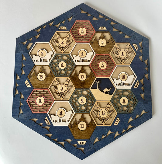 Wooden Game Board for Settlers Strategy Game, 3-4 or 5-6 Players